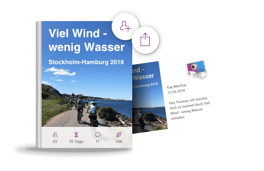 Die Funktion „Teilnehmer dürfen weitere Teilnehmer einladen“ war bei diesem Buch aktiviert. So musste ich nur ein paar Einladungskarten an das riesige Bike-Team versenden und hatte am Ende trotzdem 235 Teilnehmer in meinem Buch.